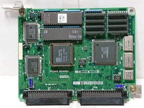 ※80287用ソケットの隣に2本×3連ジャンパスイッチJ1があり,ジャンパポスト脇に12M・8M・10Mのシルク印刷があります.10Mがショートの状態ですので,これらはベースクロックの切り替え用ジャンパと思われます. ・PC-286VE VCMS BOARD,UNIT Y17520100001(末尾の1はシール),Y17520100100 CPUは80286-12MHz.下はボードの画像です.ヤフーオークションで出品者が 新品 中古 基盤修理ジャンクなど,オークションIDが s1169096452(2025年3月7日に落札)の出品物の説明に使用されていたものを加工(元画像から切り出して1/3に縮小したものを併置しガンマ補正値を上げjpg形式に再変換)した画像を引用します. |